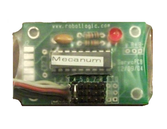 This RC mixer is designed for four wheeled mecanum robots. It mixes three input RC channels: x, y, and spin to generate the appropriate signals for motors controlling four mecanum wheels.